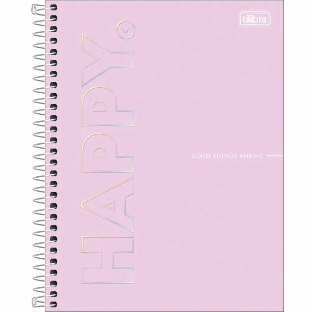 O Caderno Espiral Capa Dura Colegial 10 Matérias Happy 160 Folhas da Tilibra é perfeito para você que busca uma opção para organização da rotina de estudos com visual em cores pastel.