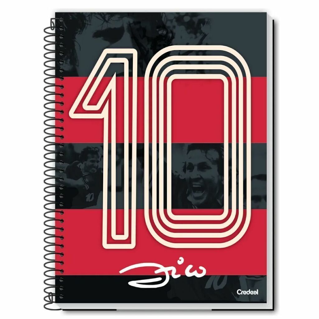 O caderno espiral de 10 matérias do Zico do Flamengo da Credeal é cheio de personalidade. A capa exibe uma imagem impactante do Zico em sua glória. As cores rubro-negras dominam, criando um visual vibrante e apaixonado.