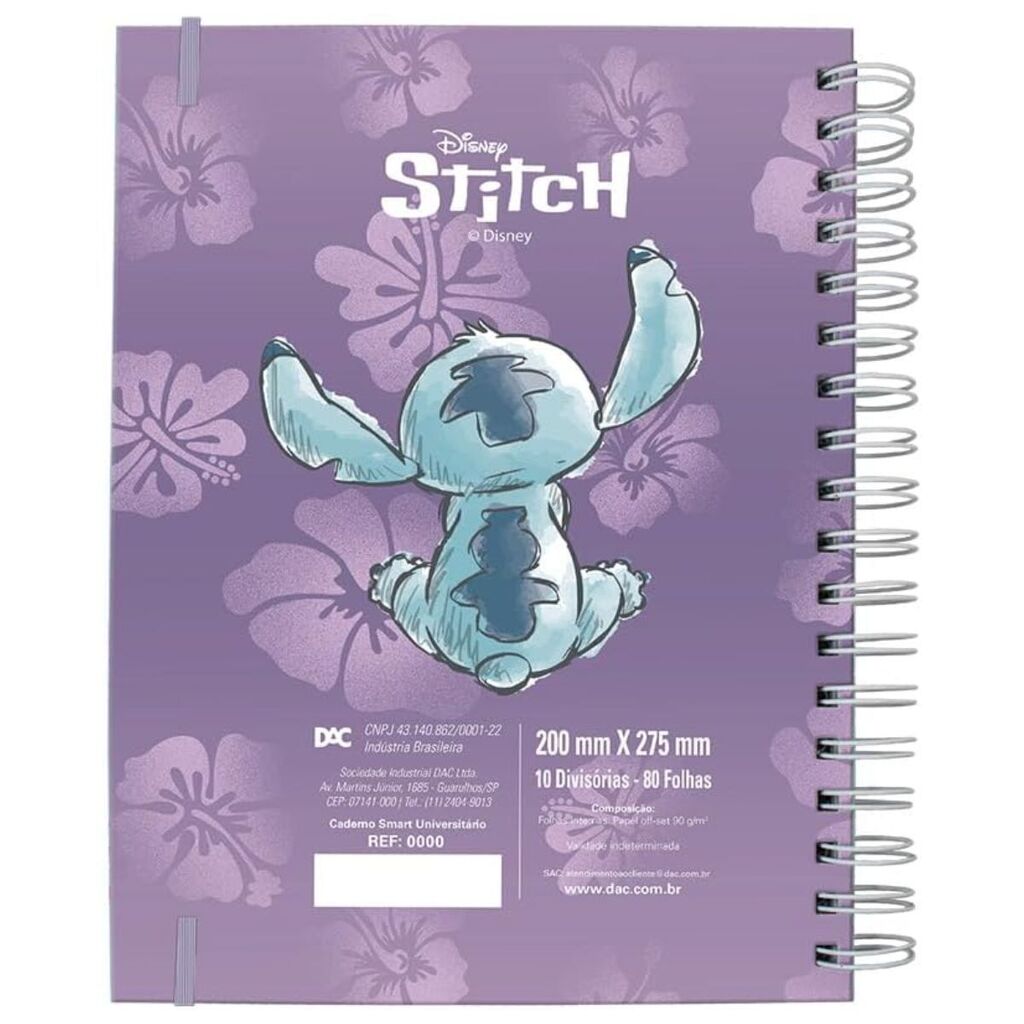 Palavras-chave: caderno universitário DAC, caderno Smart Stitchr, caderno 10 matérias DAC, caderno espiral decorado, material escolar divertido, caderno capa dura Stitch.