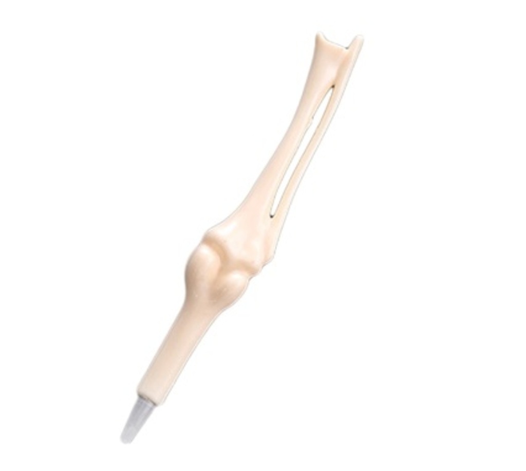 Essas canetas costumam ser feitas de plástico resistente e podem ser encontradas em várias tonalidades de azul. O design da caneta inclui detalhes realistas, como as protuberâncias e articulações encontradas nos ossos humanos.