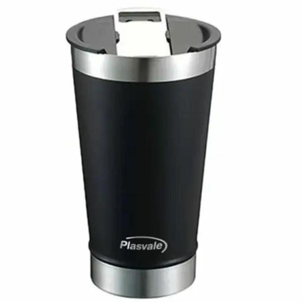 Fabricado em aço inox com parede dupla e isolamento térmico, o copo preserva a temperatura e evita suor externo. A tampa com vedação firme ajuda a manter a bebida segura contra respingos. O acabamento preto fosco adiciona um toque de elegância e praticidade.