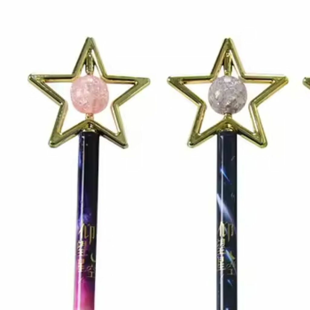 2 Canetas pretas ponta fina 0.5mm: com escrita suave e precisa, possuem design diferenciado com estrela e bola translúcida na ponta, trazendo um toque moderno e divertido para o seu material de escrita.